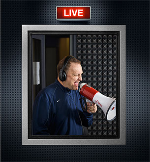 Several images were combined, retouched and color-adjusted to create this image of radio host Dan Dakich in a sound-proof booth. Shown above is an automated slideshow case study of this photo composition from start to finish.