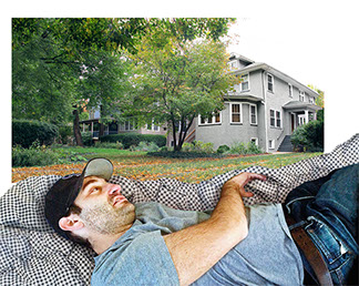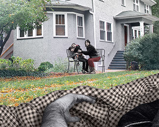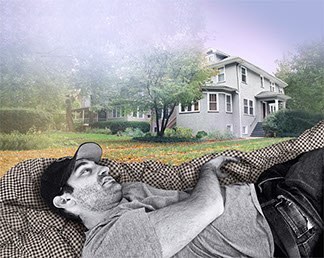 The client requested a unique composition of her family in front of their home; the design is based on Martin Mull's painting, Sanctuary. Shown above is an automated slideshow case study of this photo composition from start to finish.