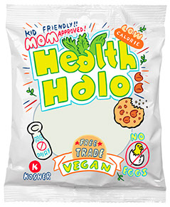 Supplied art from Hawk Krall was superimposed onto a stock cookie bag image, then the bag was colored and had effects added to create a mock product for the cover story. Shown above is an automated slideshow case study of this photo composition from start to finish.