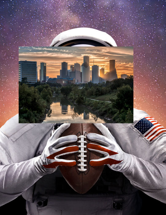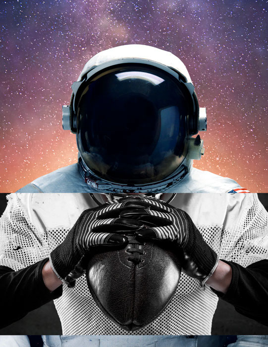 Andrew teamed up with design director Hector Sanchez to create the cover image for this commemorative magazine in a coordinated effort with the NFL and NASA. Shown above is an automated slideshow case study of this photo composition from start to finish.